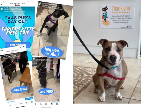 The latest collaboration between FAAS and Thrifty Kitty is Pup's Day Out. Each week some lucky pup gets to go to The Thrifty Kitty with a FAAS escort to show off their good manners. Designed to showcase adoptable animals, this social media program shines a light on the many great fur-kids looking for their forever family. Many thanks to the FAAS staff and volunteers who give interim love and socialization experiences to the dogs in their care. And who can pass up a furry companion who never judges your purchases.