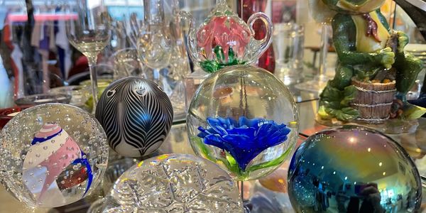 We are fortunate to have many donors who choose The Thrifty Kitty to donate their fine art, collectibles, jewelry and accessories. From Italian glassware to "ugly pottery," whimsical frogs to music boxes, you'll often find a treasure someone has passed along for a good cause.